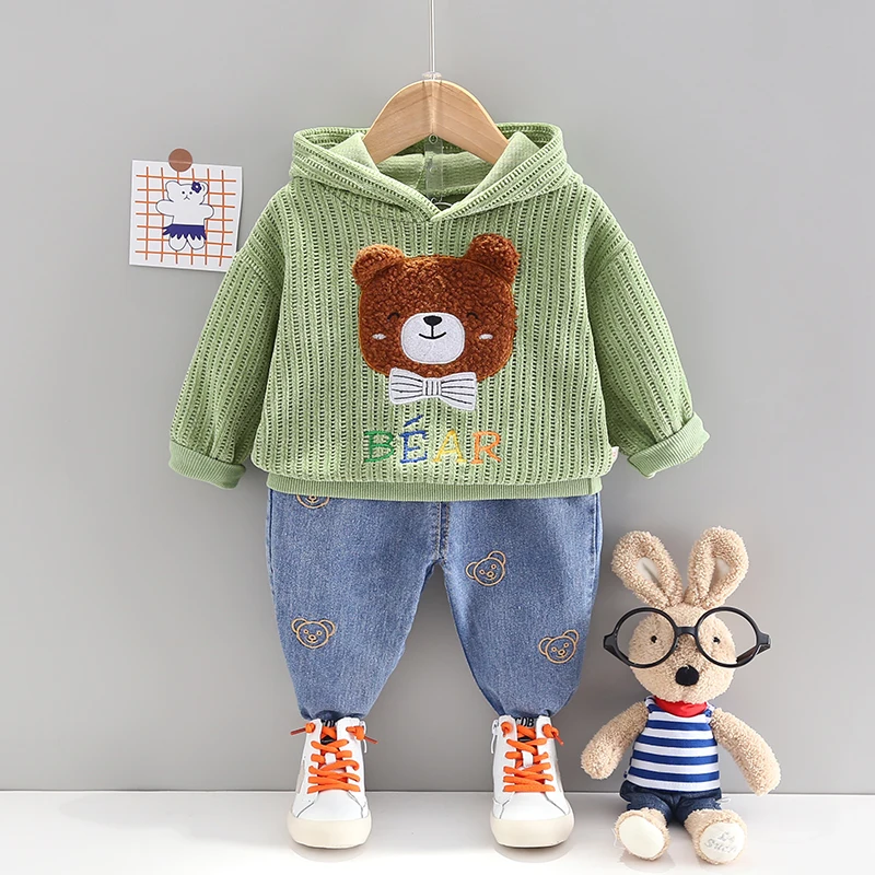 2 Pcs Teddy Bear Clothing Set for Toddlers and Kids: Long Sleeves Hooded Tee + Pants